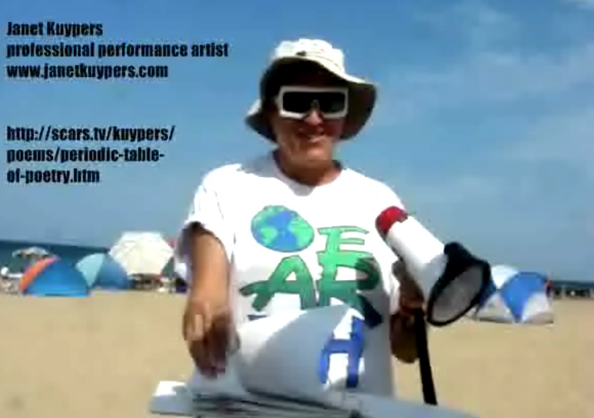 Janet Kuypers | Plutonium (pee-eew) + “Twitter Verse periodic Table Poetry” video stills 1 & 2 Plutonium: Badder than the Fat Man + poem image Bio |