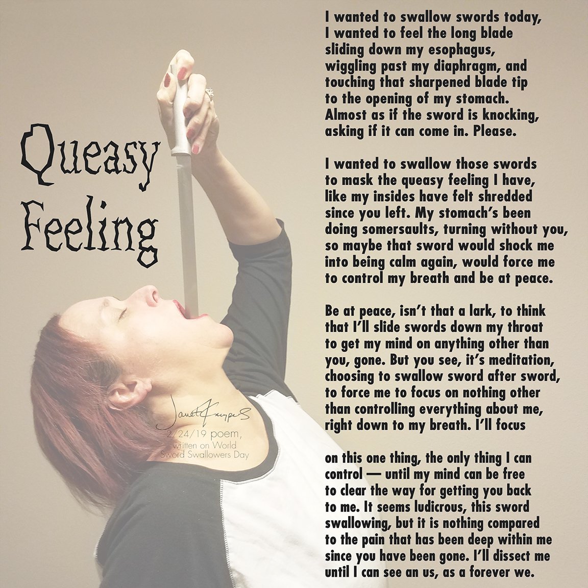 Queasy FeelingJanet Kuypers2/24/19 poem on Instagram and twitter, written on World Sword Swallowers Day